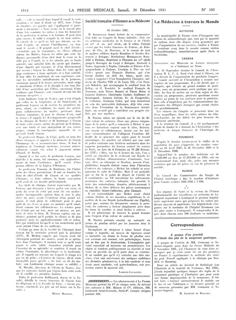 1931, Articles originaux. -