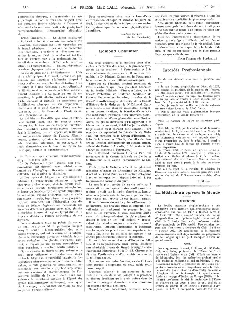 1931, Articles originaux. -
