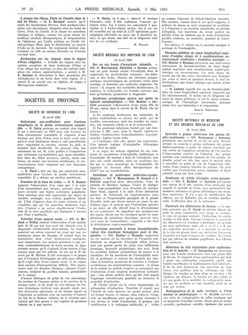 1931, Articles originaux. -