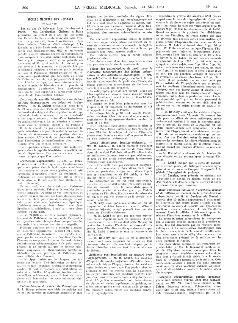1931, Articles originaux. -