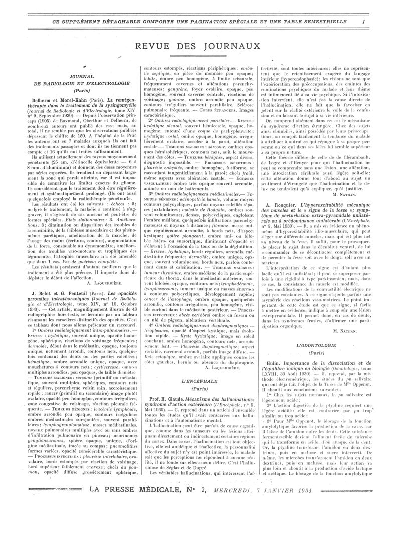 1931, Revue des journaux. -