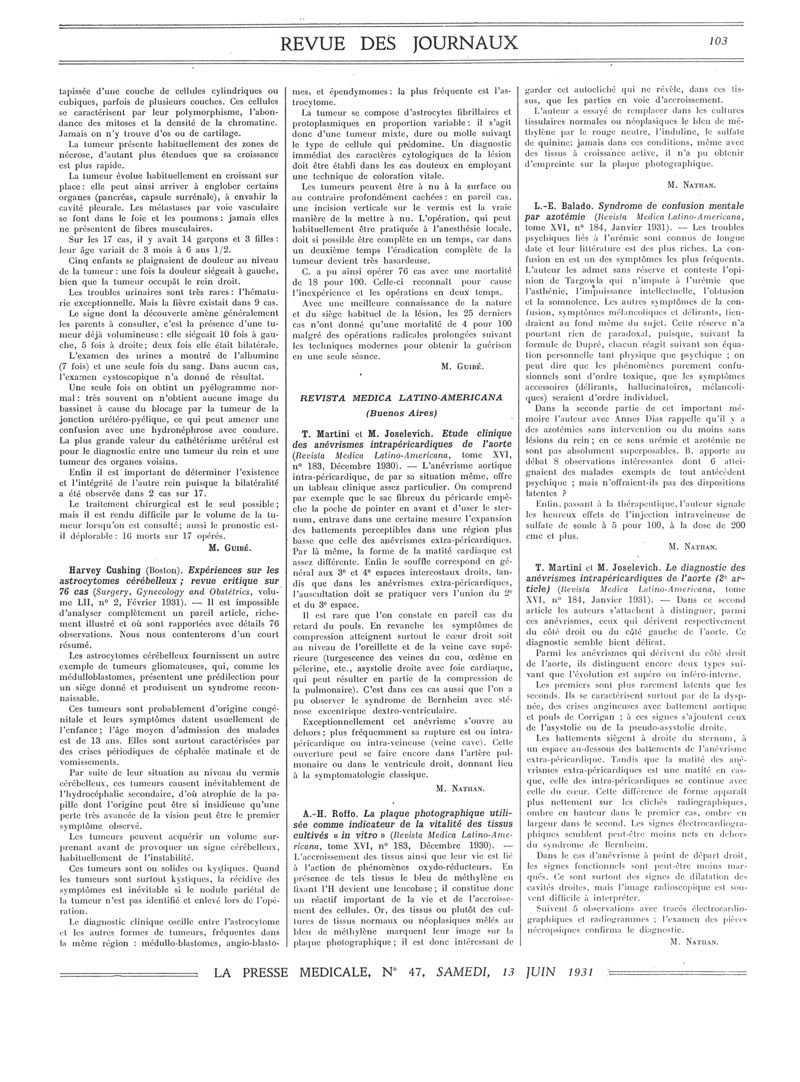 1931, Revue des journaux. -