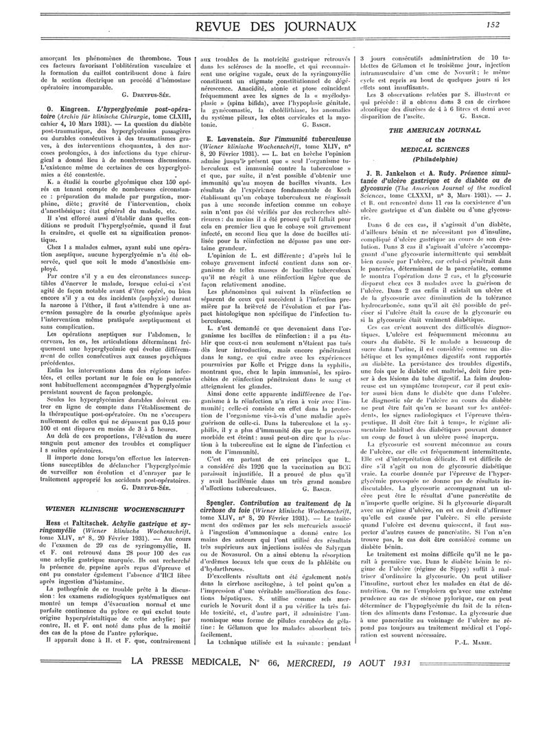 1931, Revue des journaux. -