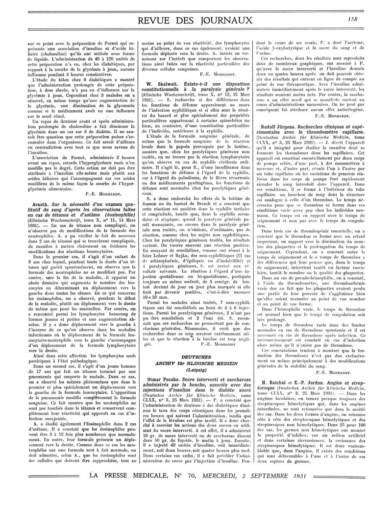 1931, Revue des journaux. -