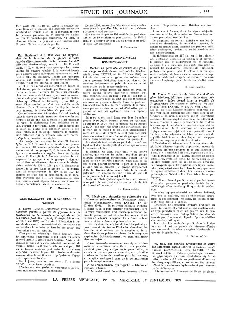 1931, Revue des journaux. -