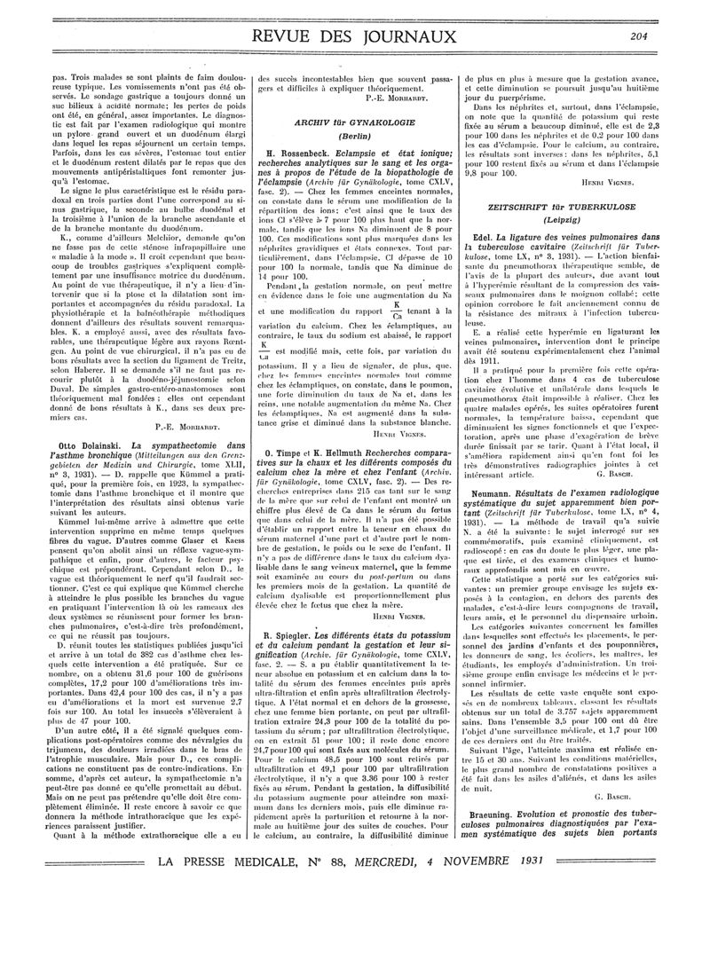 1931, Revue des journaux. -