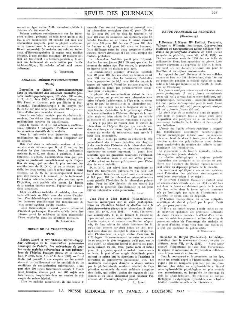 1931, Revue des journaux. -