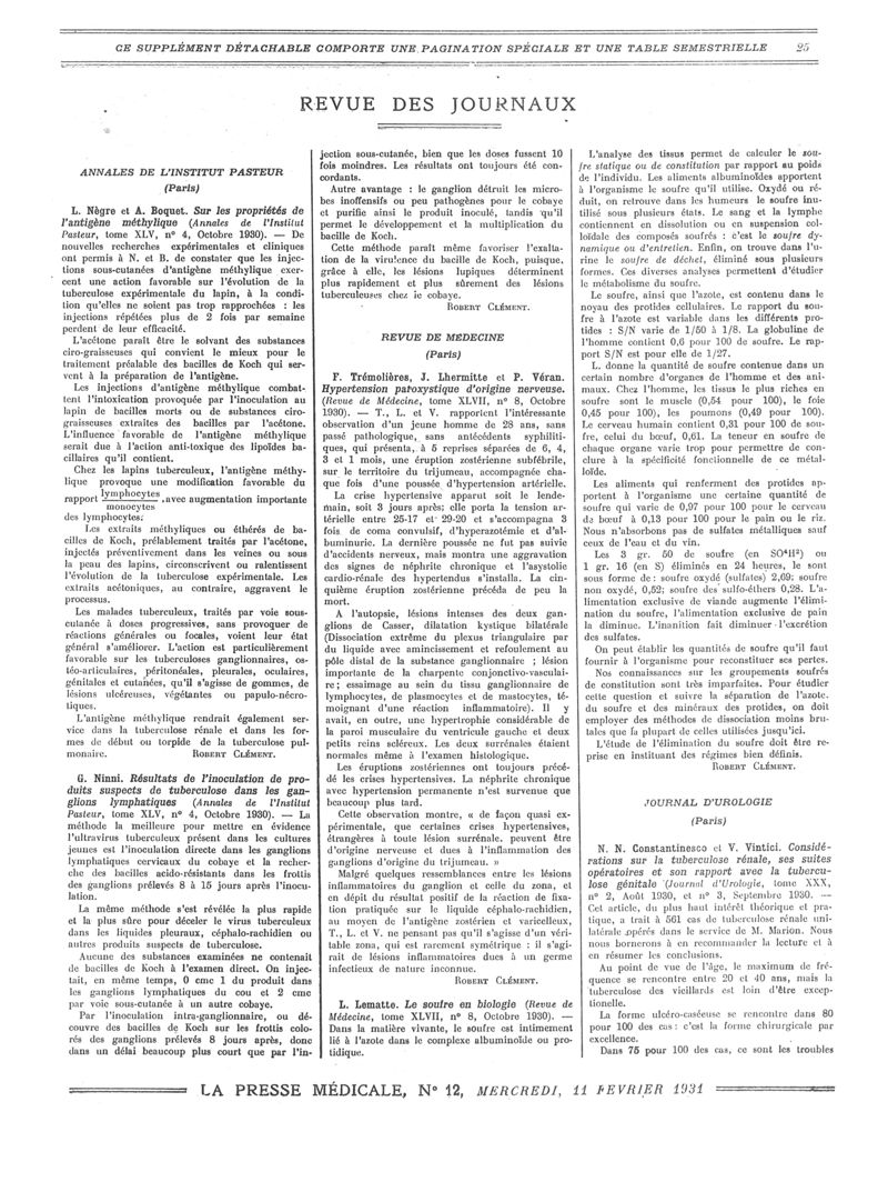 1931, Revue des journaux. -
