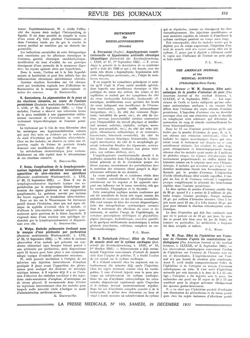 1931, Revue des journaux. -