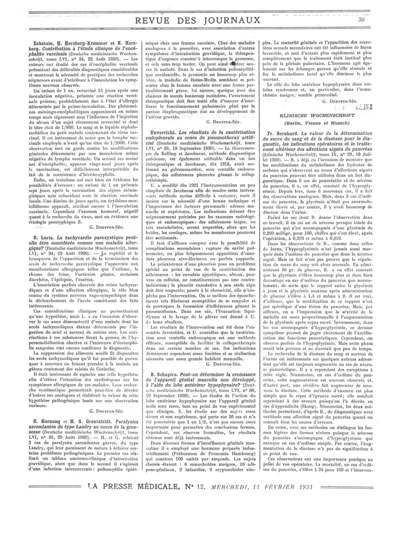 1931, Revue des journaux. -