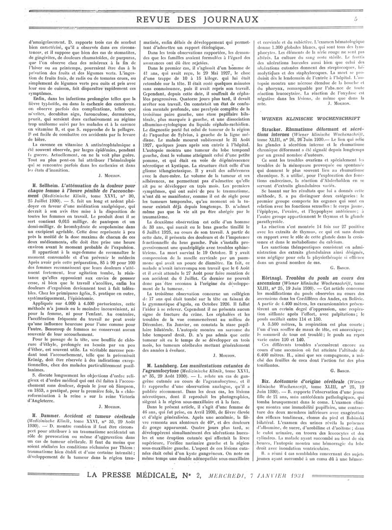 1931, Revue des journaux. -