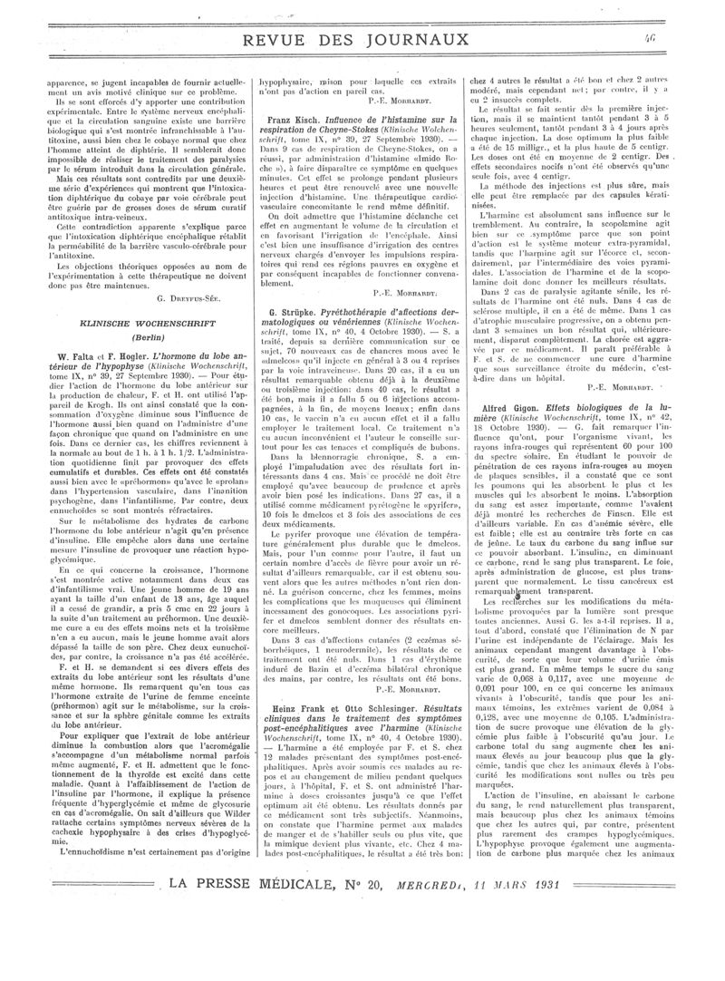 1931, Revue des journaux. -