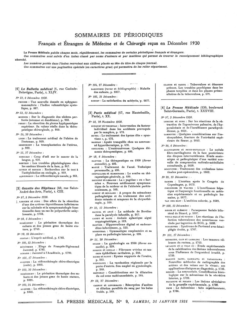 1931, Sommaires des périodiques. -