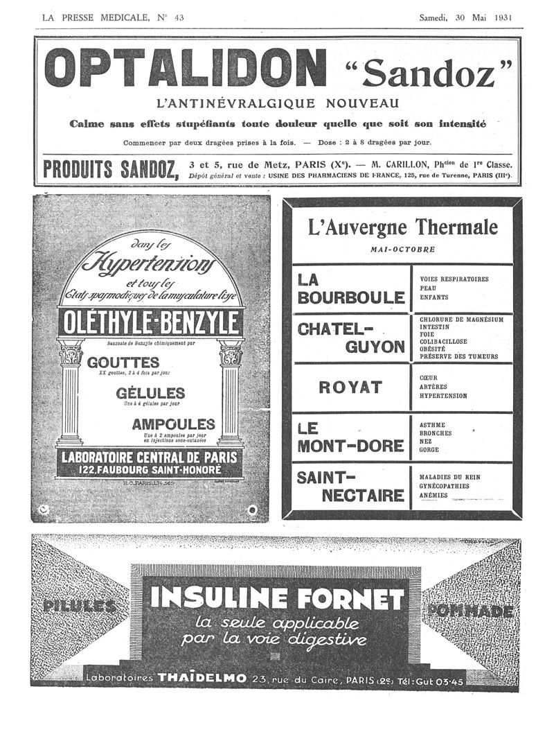 1931, Sommaires des périodiques. -