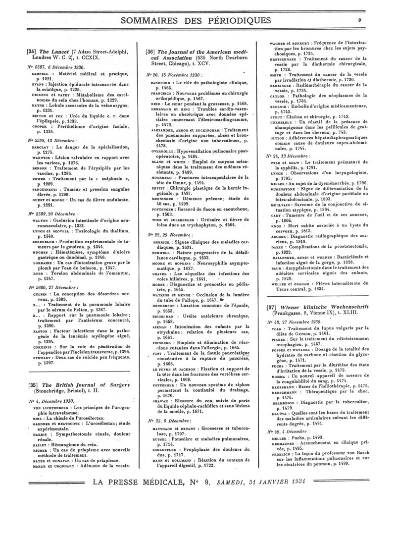 1931, Sommaires des périodiques. -