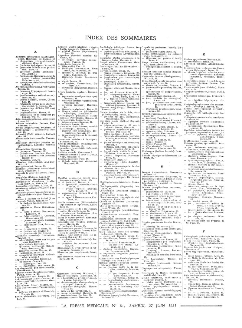 1931, Sommaires des périodiques. -