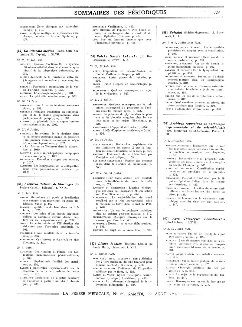 1931, Sommaires des périodiques. -
