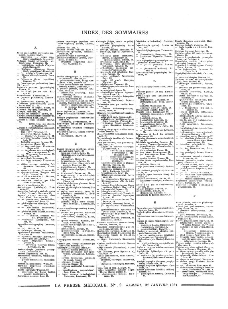 1931, Sommaires des périodiques. -