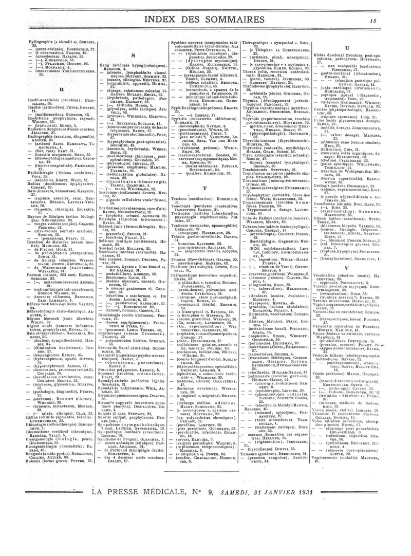 1931, Sommaires des périodiques. -