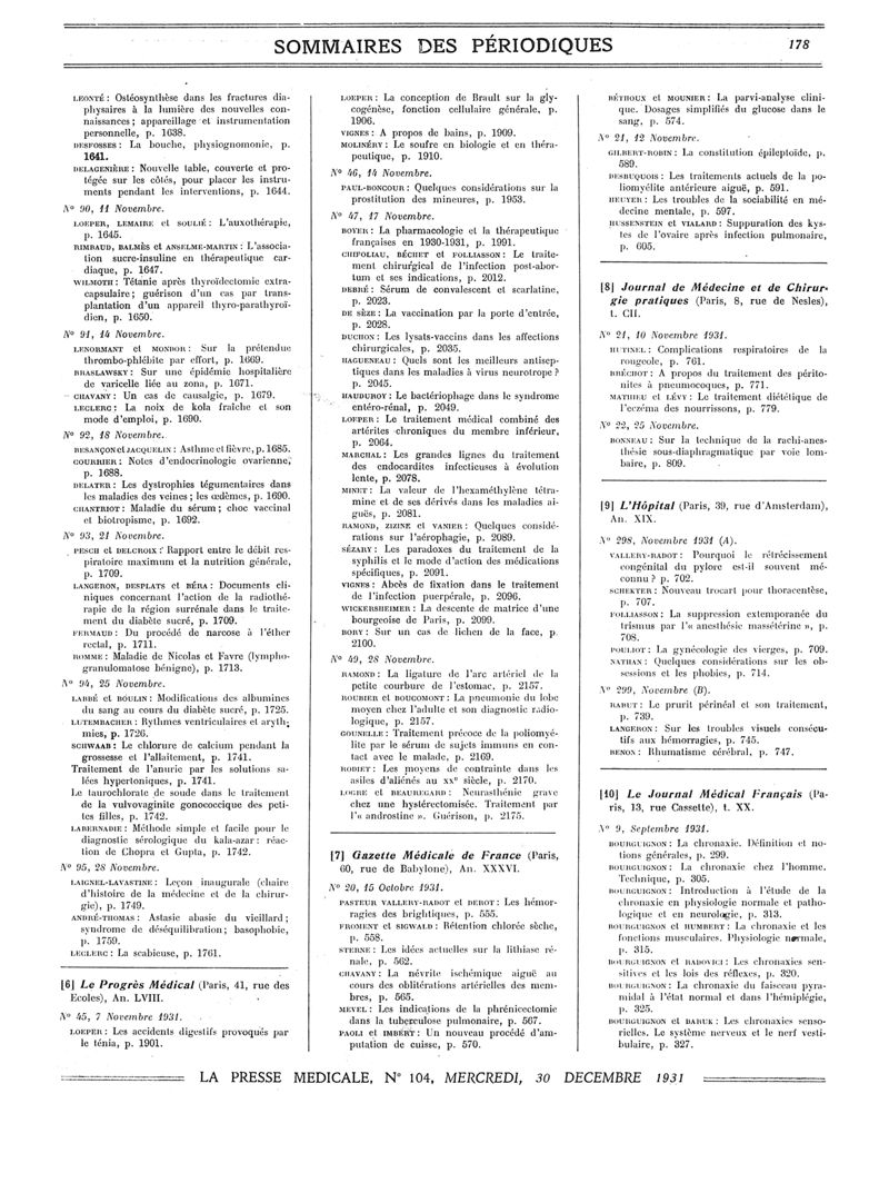 1931, Sommaires des périodiques. -