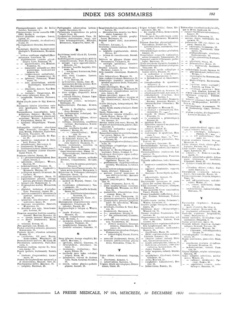 1931, Sommaires des périodiques. -