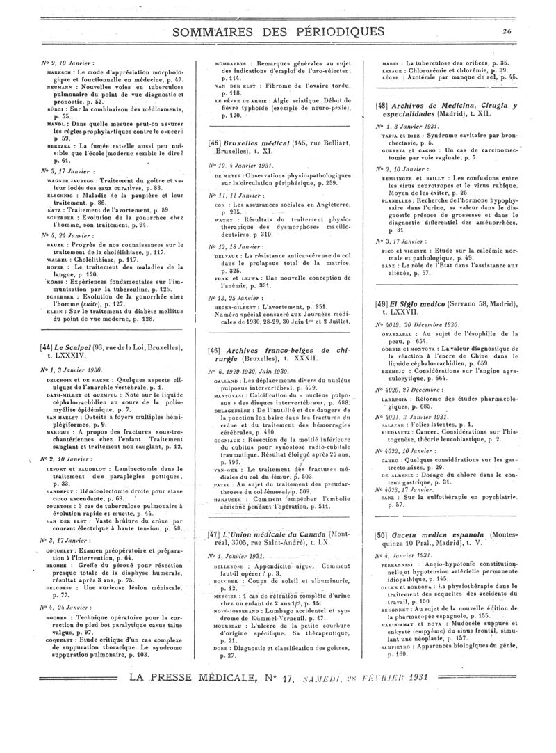 1931, Sommaires des périodiques. -