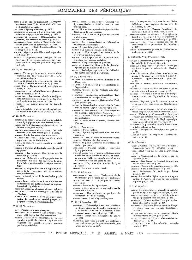 1931, Sommaires des périodiques. -