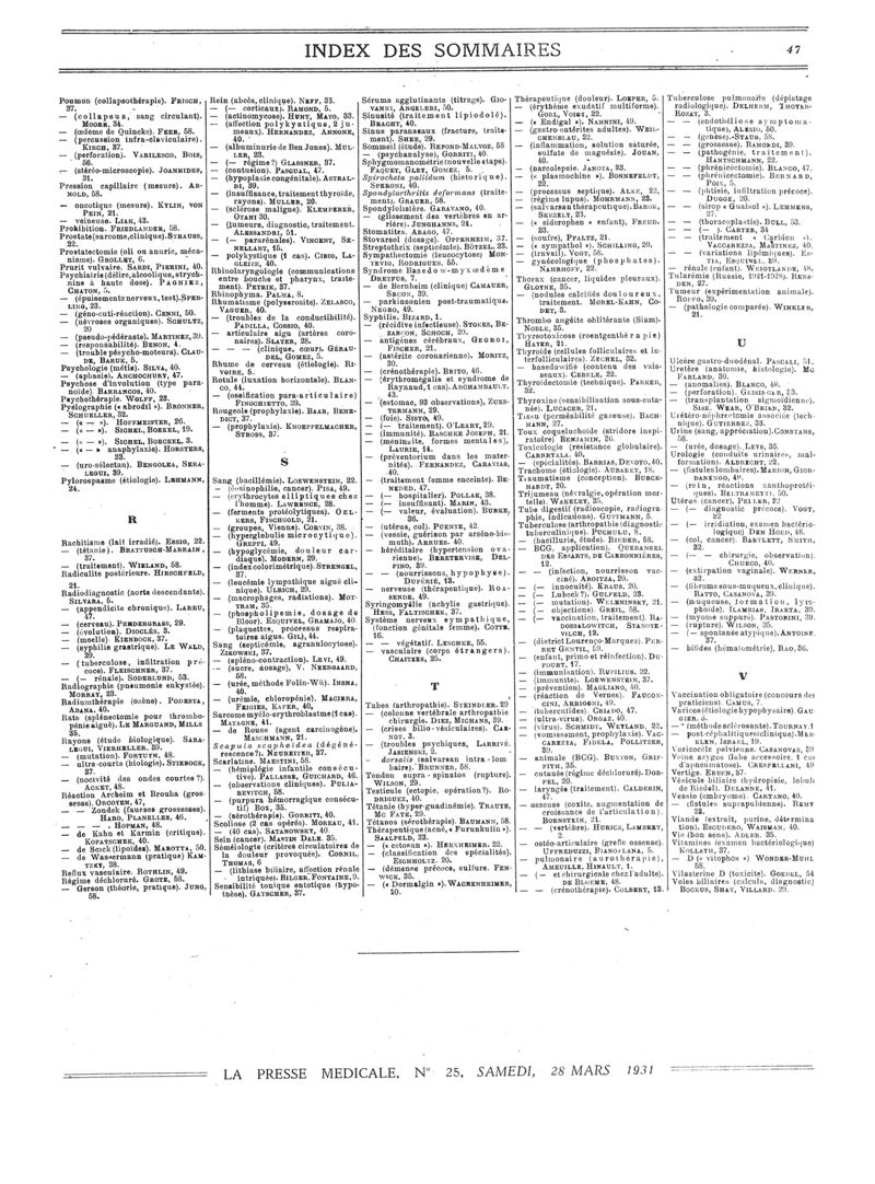1931, Sommaires des périodiques. -