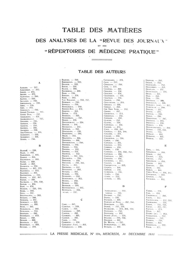 1931, Volume de tables. -