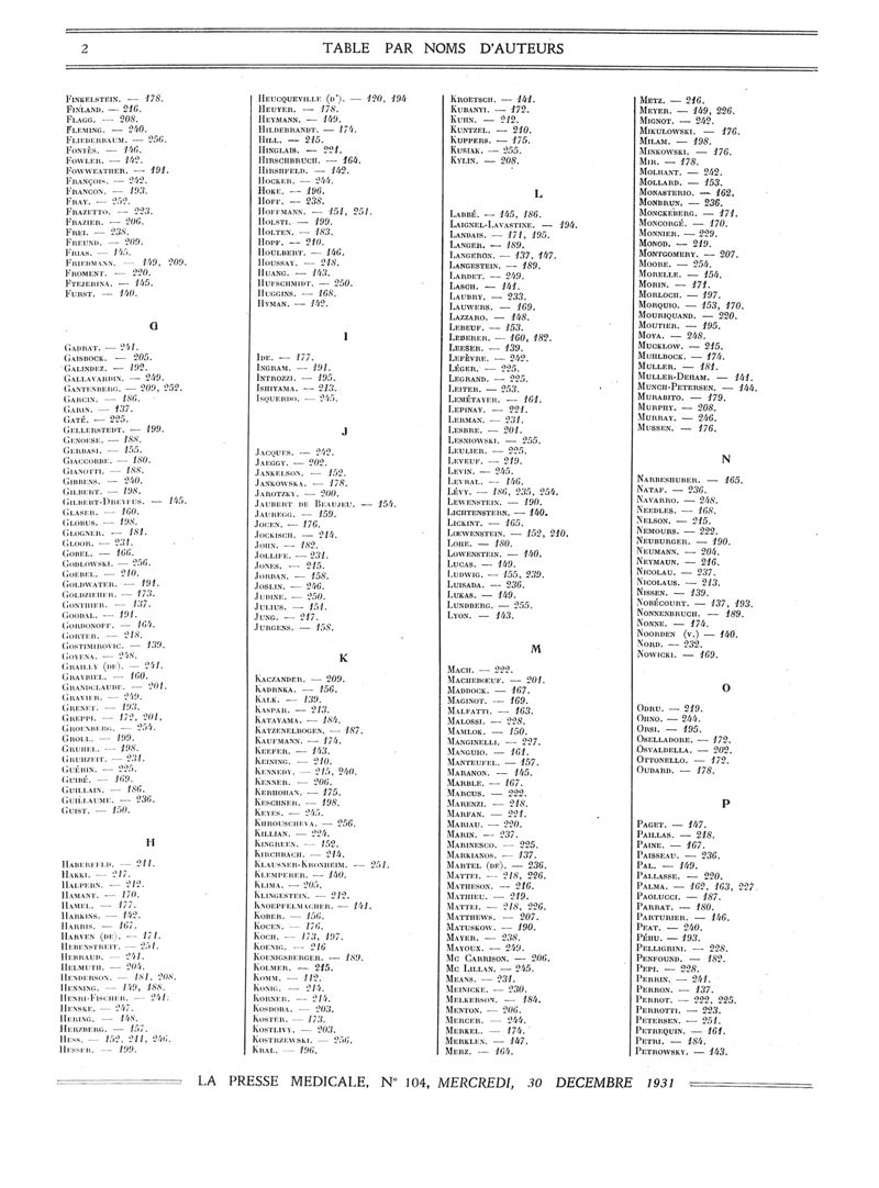 1931, Volume de tables. -