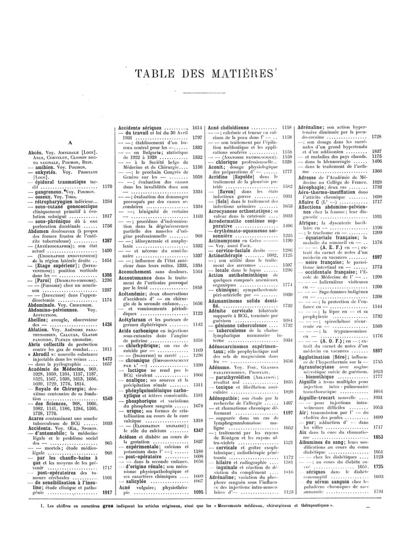 1931, Volume de tables. -
