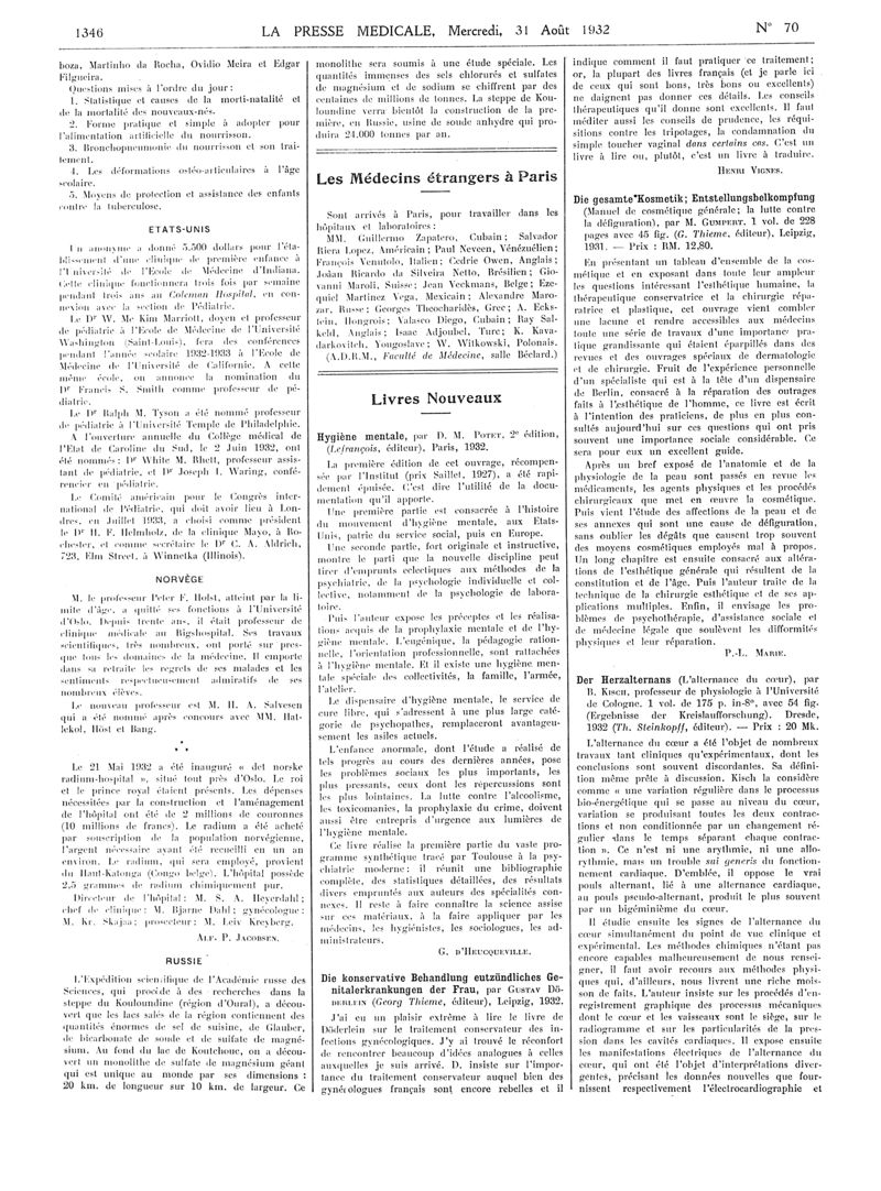 1932, Articles originaux. -