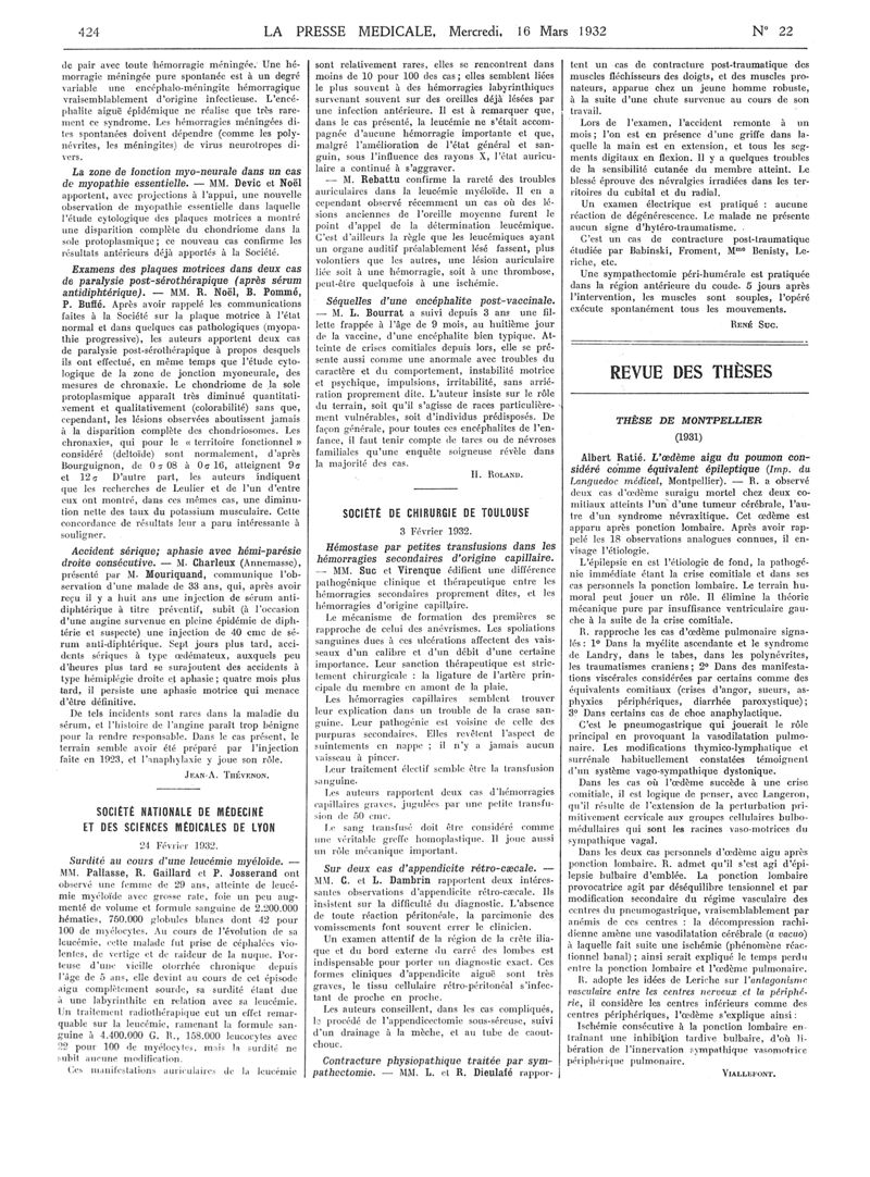 1932, Articles originaux. -