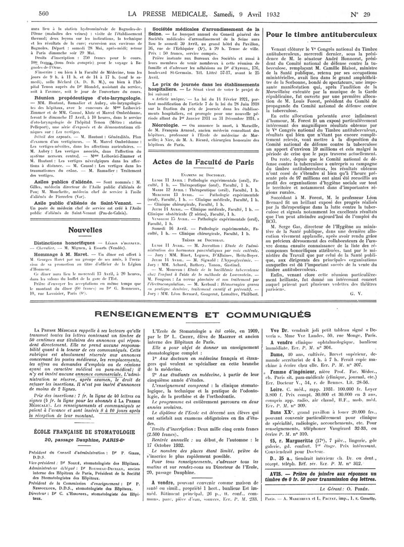 1932, Articles originaux. -