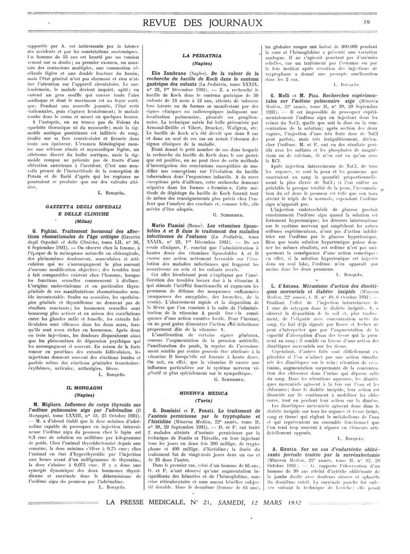 1932, Revue des journaux. -