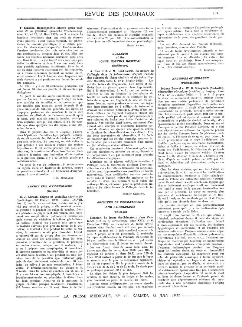 1932, Revue des journaux. -