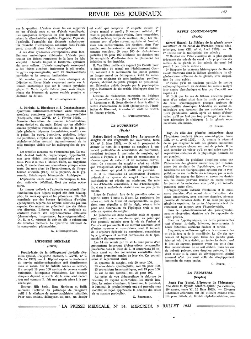 1932, Revue des journaux. -