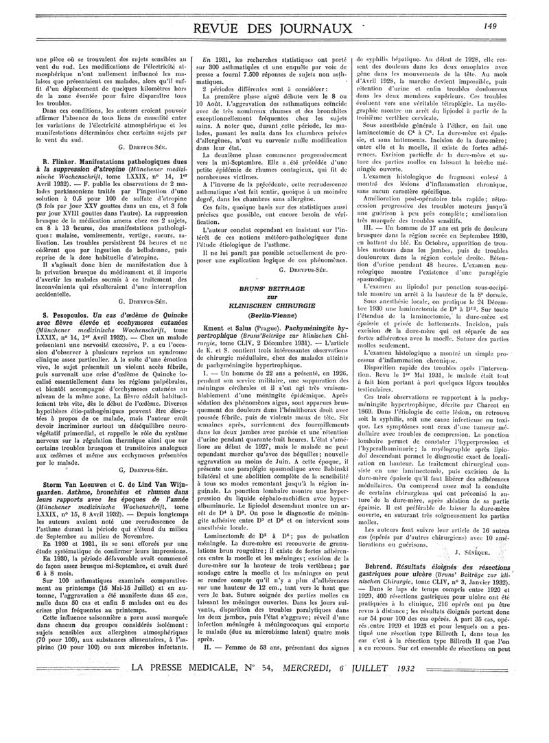 1932, Revue des journaux. -
