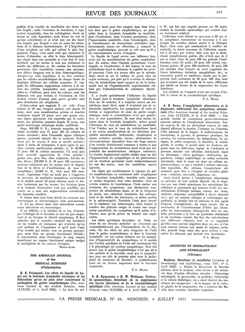 1932, Revue des journaux. -
