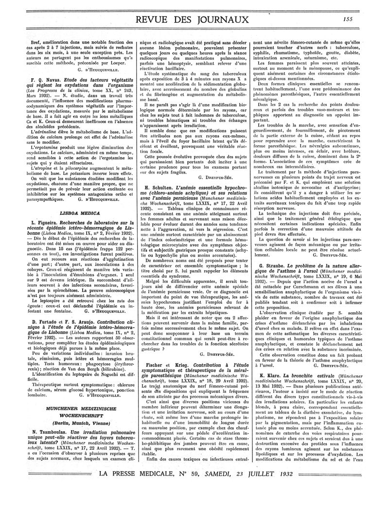 1932, Revue des journaux. -