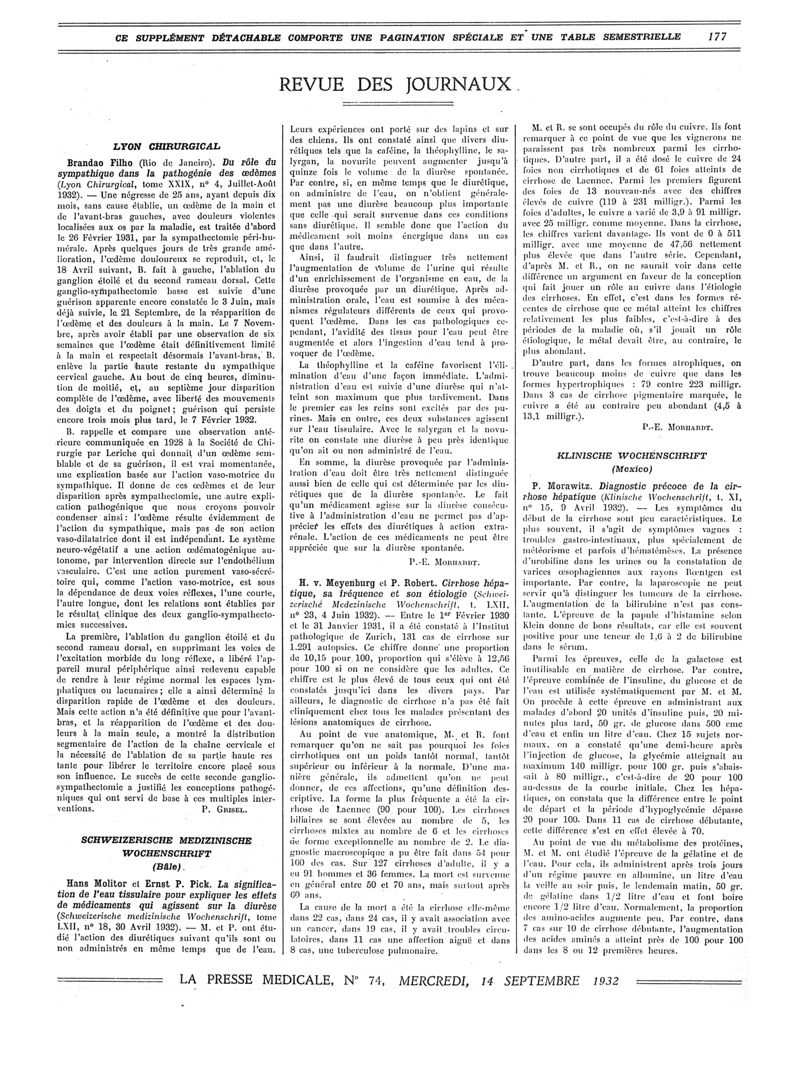 1932, Revue des journaux. -