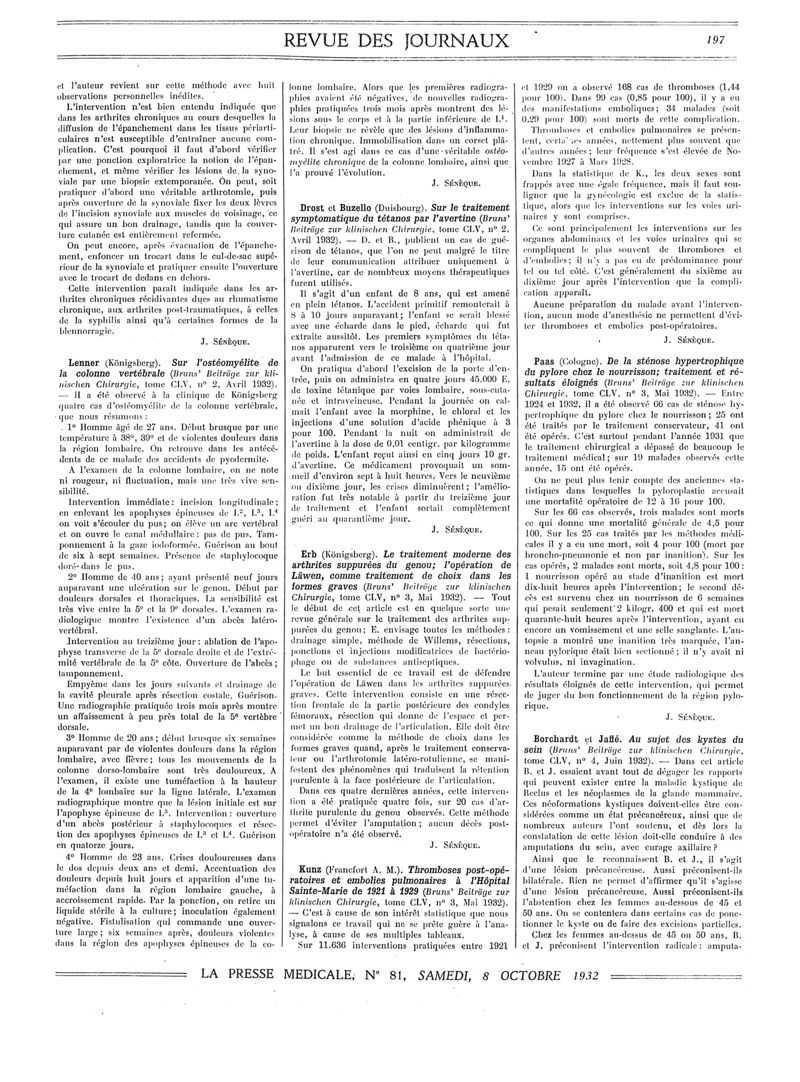1932, Revue des journaux. -