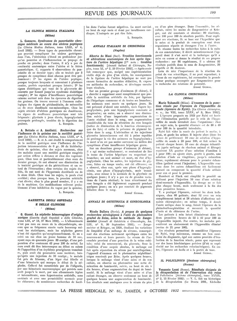 1932, Revue des journaux. -