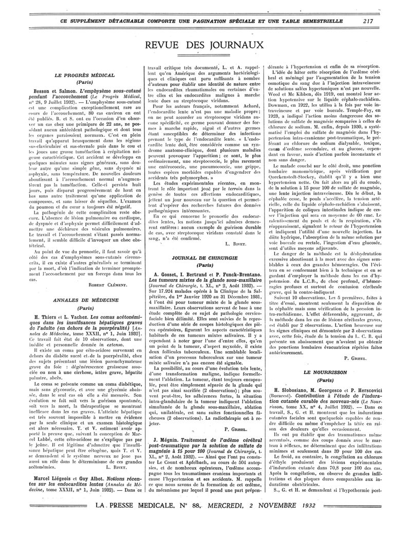 1932, Revue des journaux. -
