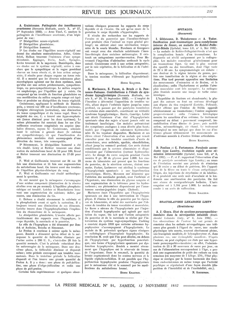 1932, Revue des journaux. -