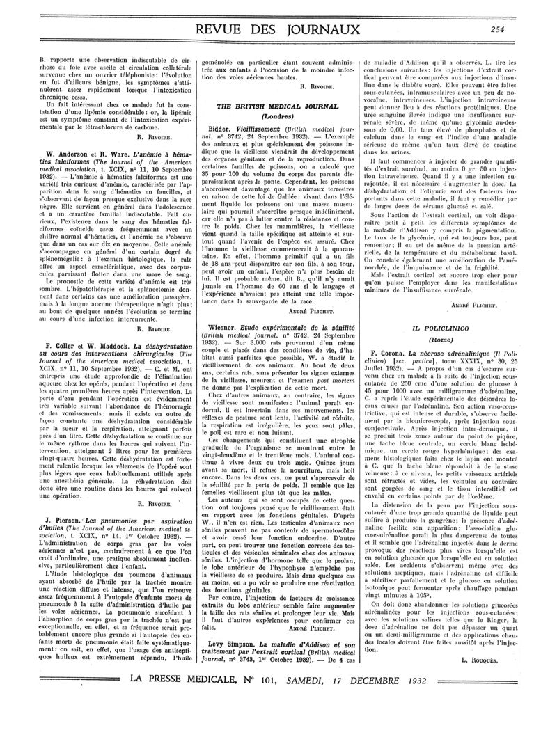 1932, Revue des journaux. -