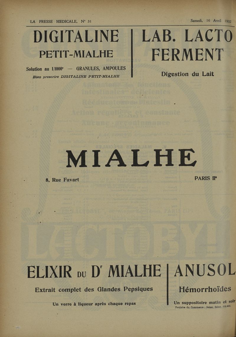 1932, Revue des journaux. -