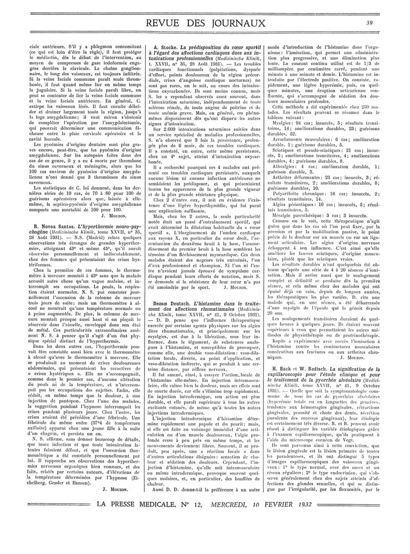 1932, Revue des journaux. -