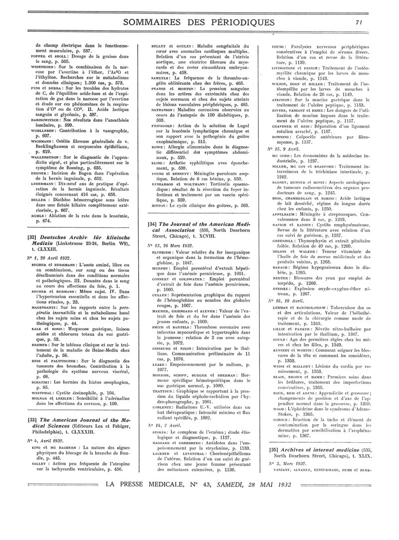 1932, Sommaires des périodiques. -