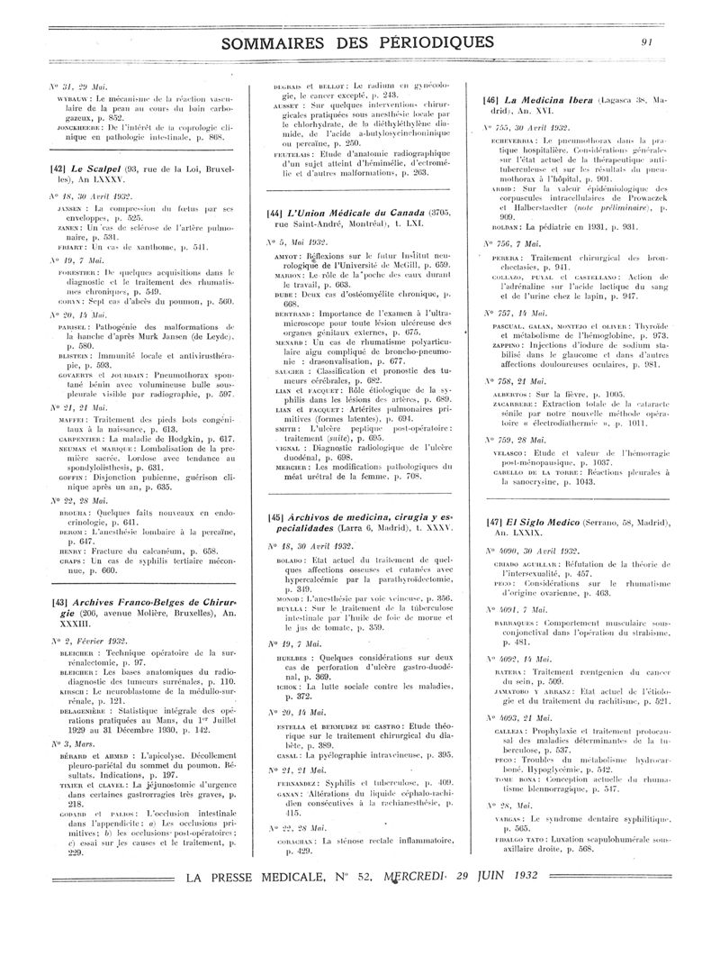 1932, Sommaires des périodiques. -